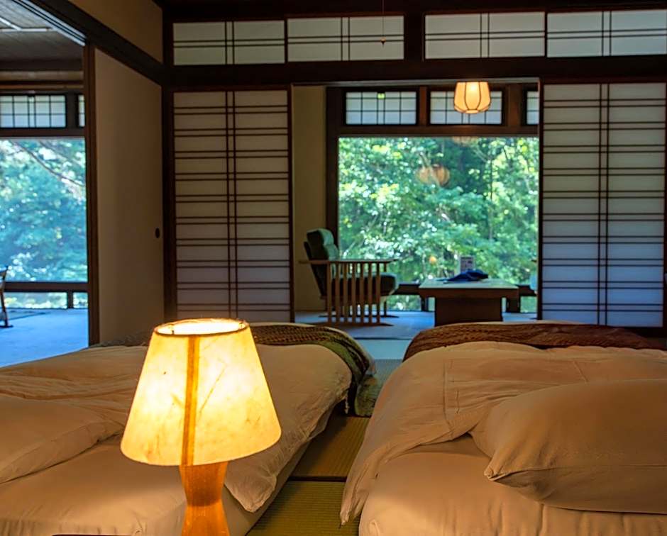 The spacious triple room offers air conditioning, tatami, as well as a private bathroom boasting a bath and a shower. The triple room provides a flat-screen TV, a tea and coffee maker, a seating area, a wardrobe as well as river views. The unit has 3 futons.